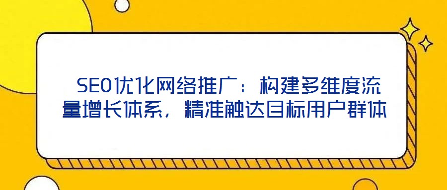 在數字化營銷生態(tài)中,SEO優(yōu)化網絡推廣已成為企業(yè)獲取精準流量、提升品牌影響力的核心戰(zhàn)略。本文從關鍵詞策略、內容生態(tài)、外鏈權威及社交傳播四個維度,系統(tǒng)闡述如何通過系統(tǒng)性SEO實踐,打造可持續(xù)的網站流量新渠道,實現目標用戶的精準引流與轉化。